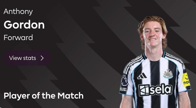 打入唯一进球助纽卡客胜切尔西,安东尼-戈登当选全场最佳