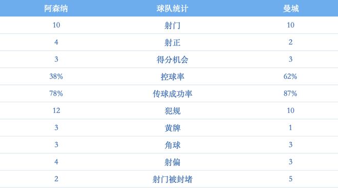 在此之后,阿森纳试图反扑,但曼城防线稳固,枪手全场机会太少,未能对曼城门将特拉福德构成实质威胁。最终曼城2-0完胜,捧起联赛杯。