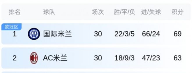 三轮联赛2平1负,仅拿到2分。与此同时,追赶者AC米兰近三轮2胜1负,抢下6分。两相对比,国米的领先优势从8分缩水至6分。