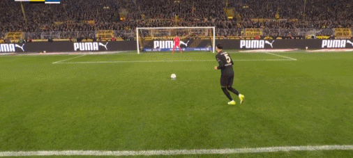 第73分钟,拜尔再次造点,本塞拜尼罚进,多特1-2汉堡