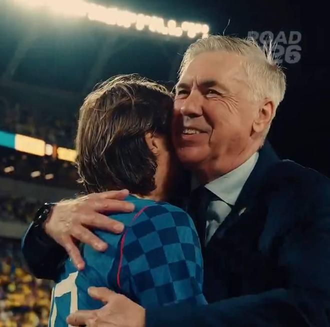 根据著名记者罗马诺转载博主“RoadToUsa26”发布的视频,在巴西对阵克罗地亚的赛后,安切洛蒂走向莫德里奇,对其耳语并拥抱。