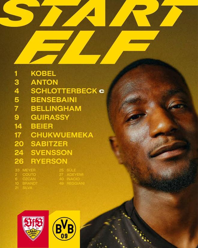 多特客战斯图加特:吉拉西、丘库埃梅卡、乔布-贝林厄姆首发
