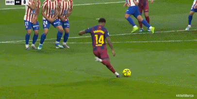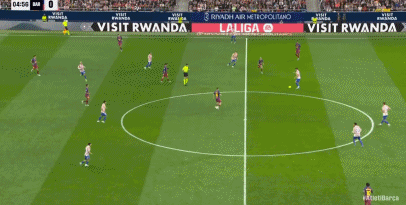 第35分钟,巴萨前场精彩配合,亚马尔巧射击中立柱