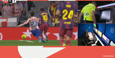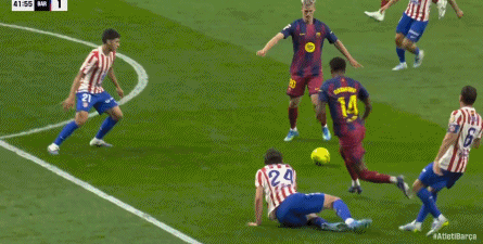第32分钟,格列兹曼铲倒佩德里,被主裁判口头警告