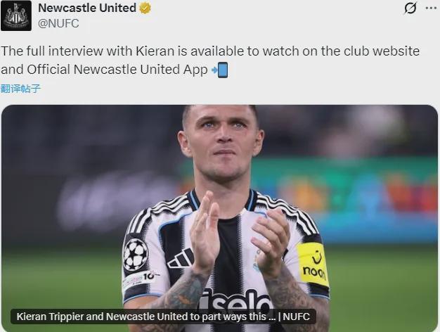 官方:纽卡斯尔宣布特里皮尔将在本赛季结束合同到期后自由转会离队。