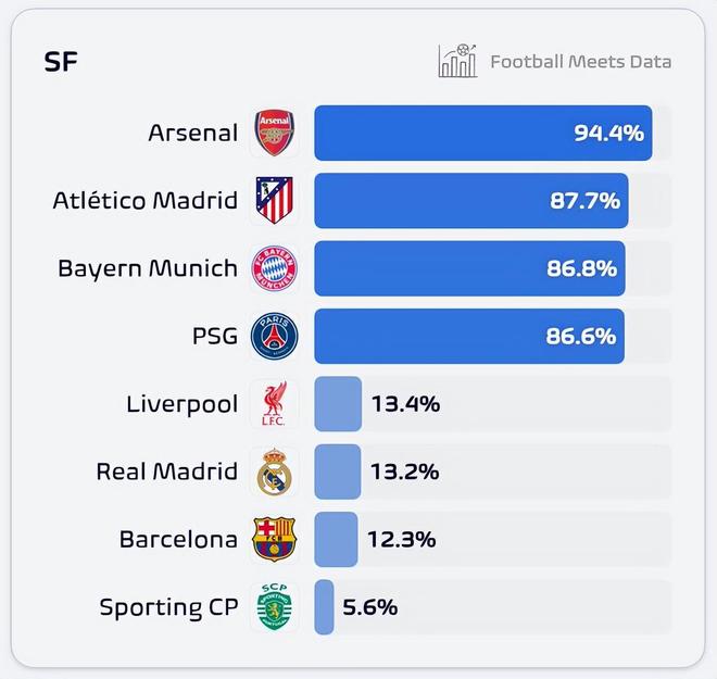 虽然大数据预测里,利物浦的晋级可能性比巴萨多了1个百分点,但这无非是因为利物浦拥有主场优势。巴萨落后2球,还要去客场。晋级概率跟回到主场的利物浦,以及落后1球的皇马很接近,这也说明,巴萨在实力上比马竞还是有优势。