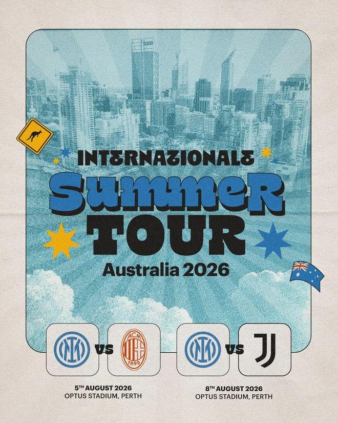 蓝黑军团八月份将坐镇珀斯的澳都斯体育场,进行两场备受瞩目的友谊赛,作为致敬意大利足球的一部分。