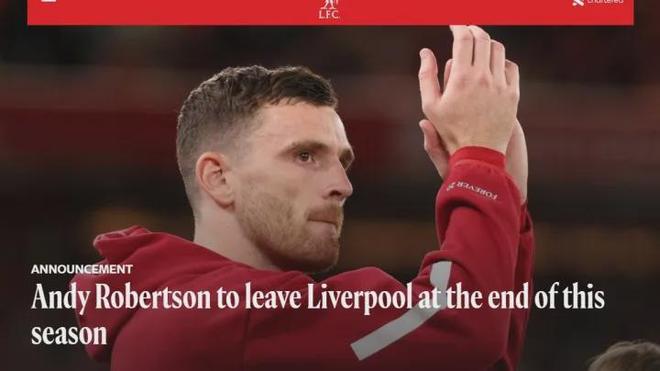 官方:利物浦宣布罗伯逊将在今夏合同到期后离队,结束其9年的红军生涯。