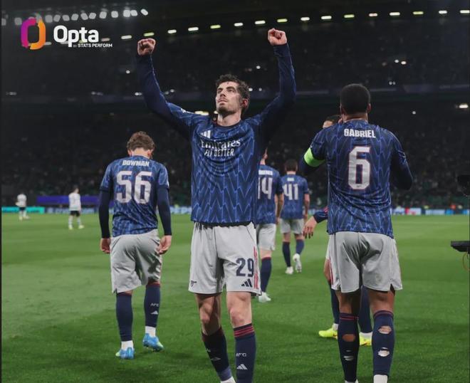 此外哈弗茨的进球也是本赛季阿森纳在欧冠赛场上第四粒由替补球员助攻并打进的进球,是欧冠单赛季达成这一数据最多的球队。