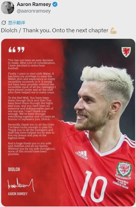 拉姆塞现年35岁,他在2008年加盟阿森纳,效力枪手11个赛季,总共为球队出场369次,贡献64球60助,随队夺得了3次社区盾杯冠军和3次足总杯冠军。