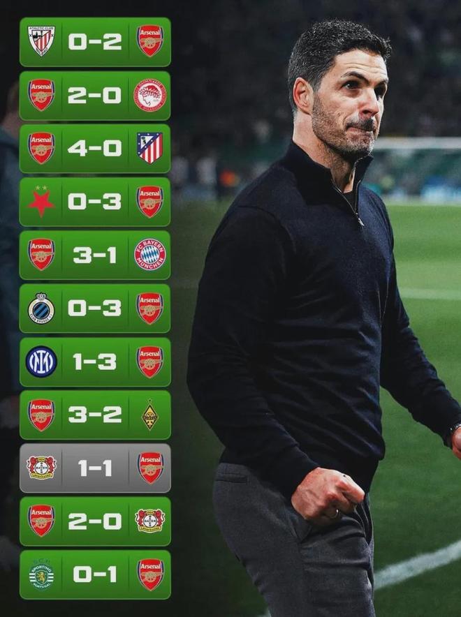 战胜葡萄牙体育之后,阿森纳依然是本赛季欧冠唯一一支保持不败的球队。